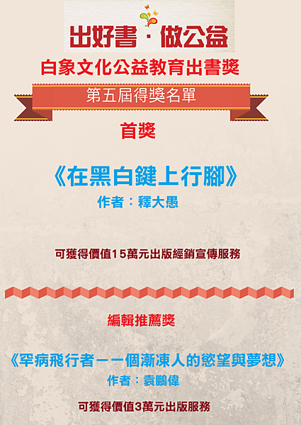 「恭喜師父,獲得第五屆白象公益教育出書獎首獎......」